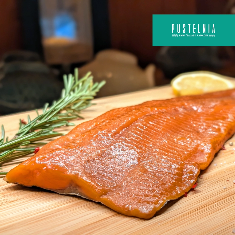 PSTRĄG Z PUSTELNI WĘDZONY NA ZIMNO 350 g
